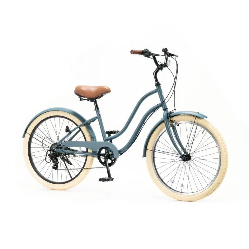 中高生以上の小柄な女子をターゲットにしたモデル。トップチューブを下げたダブルループフレームで跨ぎやすさを重視しました。クリームタイヤを装着し、キッズバイクとは一味違う落ち着いた上品なスタイルに仕上げました