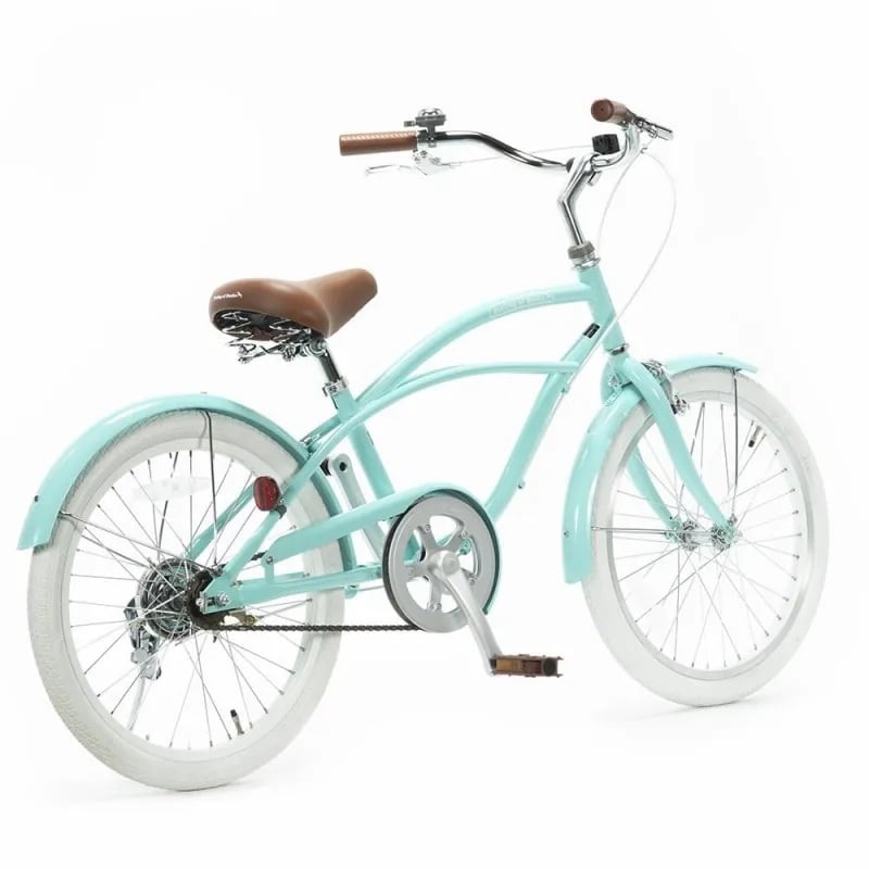 身長120cmから乗れる本格派キッズビーチクルーザーは、クルーザー特有のフレーム形状を維持しながら、 非常に低いサドル高を実現しました。専用設計のハンドルに、あえて後ろブレーキにはバンドを採用。多くの方が待ち望んでいた、本当におしゃれなキッズバイクです。
